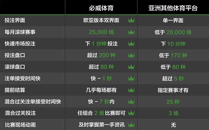 每月Betway必威有平均25,000现场滚球投注,任何一个亚洲体育平台都无法匹敌的。